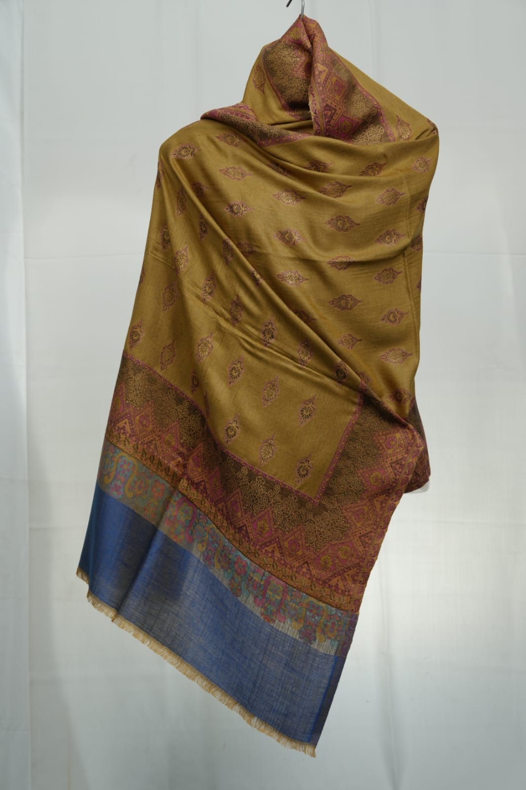 Kani Jama do Patri pashmina shawl golden with multi color design