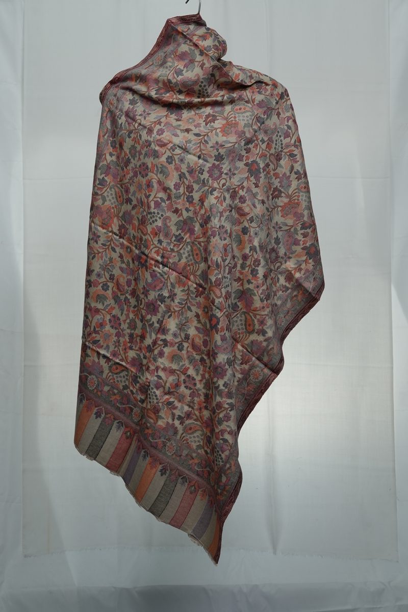 Kaani pashmina khaki brown pink reversible
