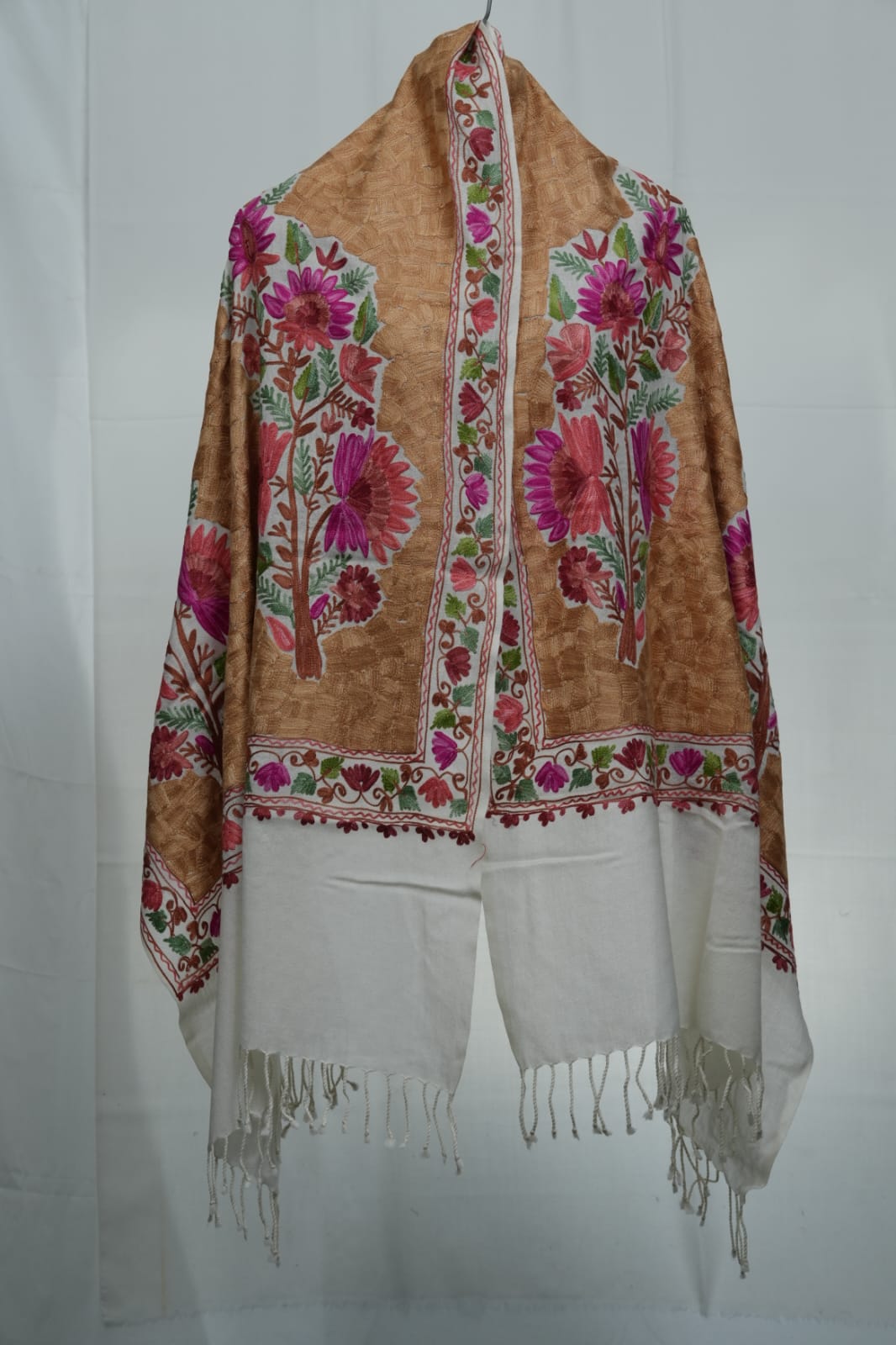 luxury woolen pashmina shawl white with multi handmad embroidery full work